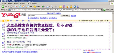 雅虎百業(yè)窗的形式可以包含中文、英文、數(shù)字、符號(hào)等多種形式,不論是企業(yè)、產(chǎn)品、商標(biāo)名及其簡(jiǎn)稱,還是部門、電話號(hào)碼、宣傳口號(hào)等,都可以注冊(cè)成實(shí)名。 |