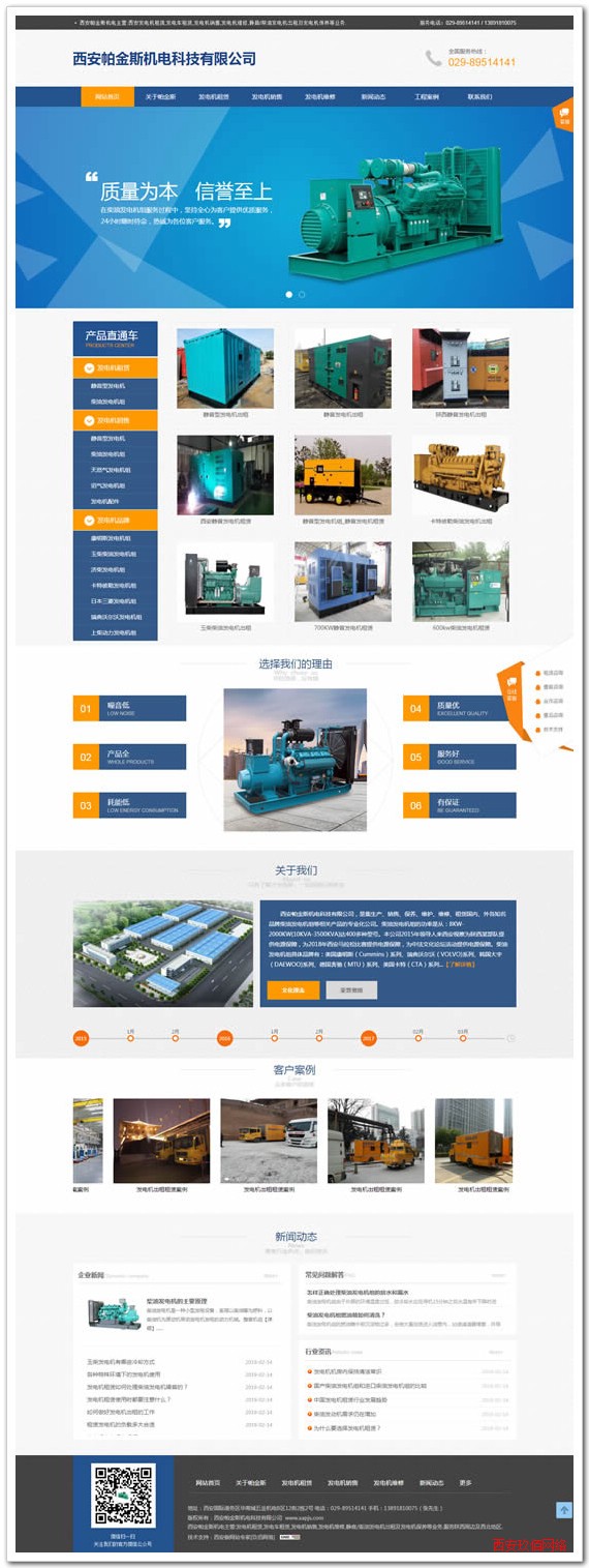 西安帕金斯機電科技有限公司,是集生產(chǎn)、銷售、保養(yǎng)、維護、維修、租賃國內(nèi)、外各知名品牌柴油發(fā)電機組等相關(guān)產(chǎn)品的專業(yè)化公司。柴油發(fā)電機組的功率是從:8KW-2000KW(10KVA-3500KVA)達400多種型號。本公司2015年領(lǐng)導(dǎo)人來西安視察為陜西某部隊提供電源保障,為2018年西安馬拉松比賽提供電源保障,為中法文化論壇活動提供電源保障。